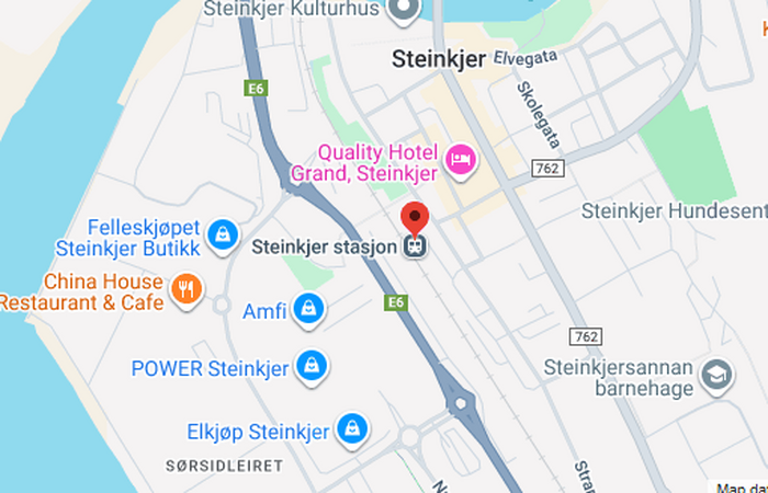 Steinkjer Stasjon har en sentral og lett tilgjengelig beliggenhet midt i byen, med tog- og bussforbindelser rett utenfor døren. Kort gangavstand til sentrum, offentlig service, butikker og serveringstilbud.